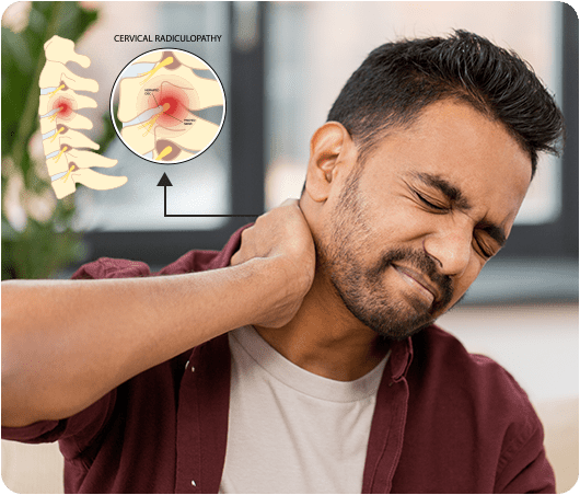 All these causes result in the narrowing of the cervical spinal canal, causing compression of the spinal cord & nearby nerves and resulting in pain & inflammation.